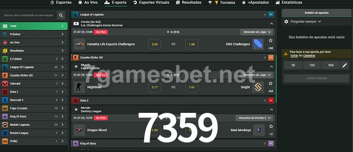A aposta 7359 oferece aos jogadores a experiência mais conveniente de apostas em eSports!